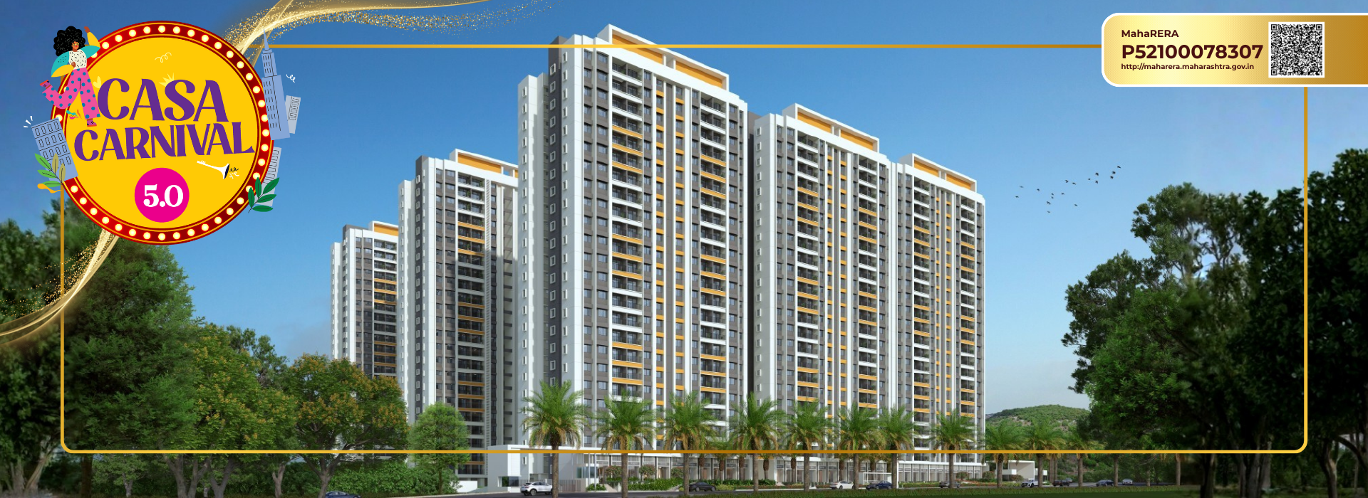 The project has been registered via MahaRERA registration number: P52100049648, P52100078307 and is available on the website https://maharera.mahaonline.gov.in under registered projects.
